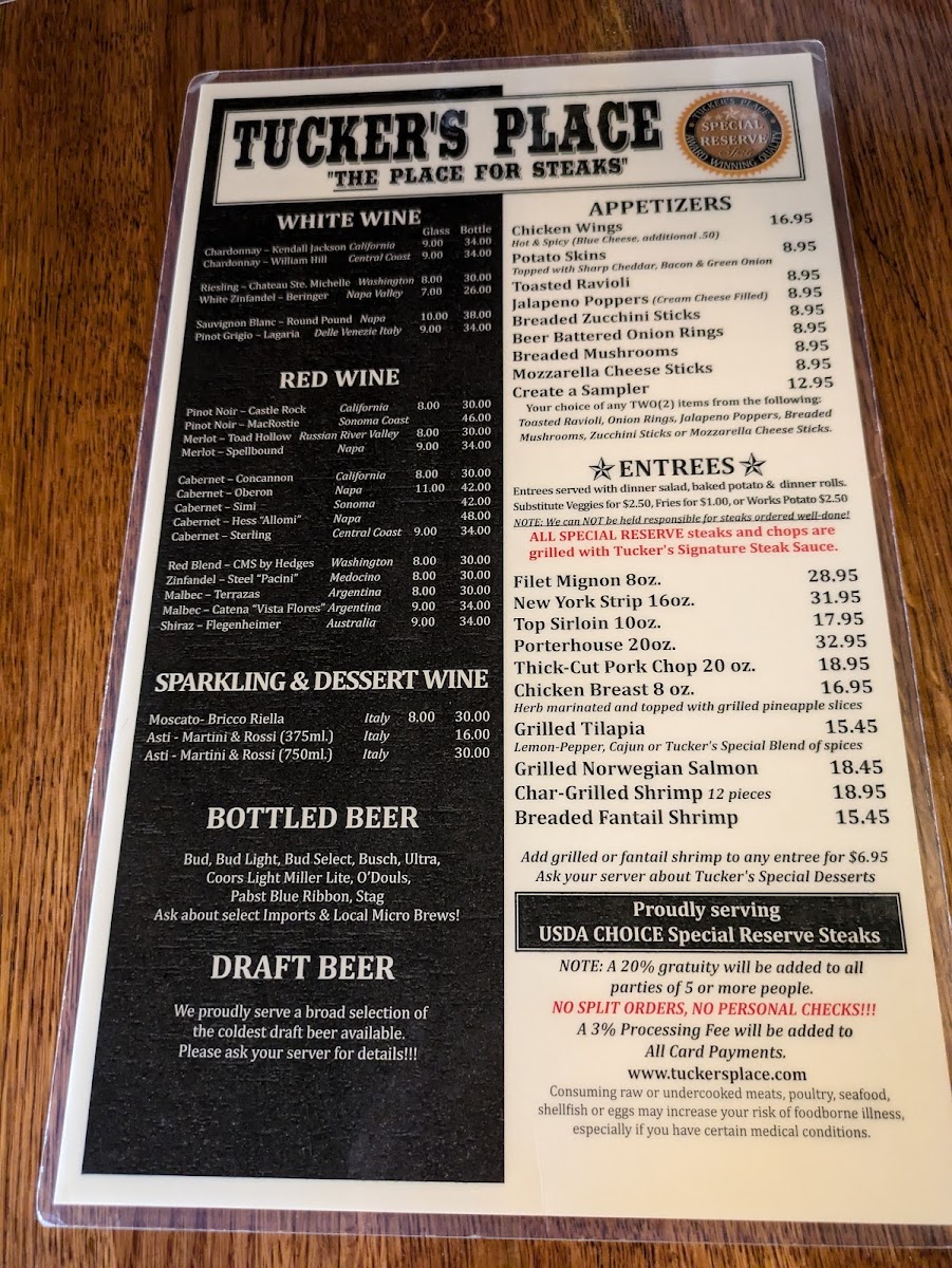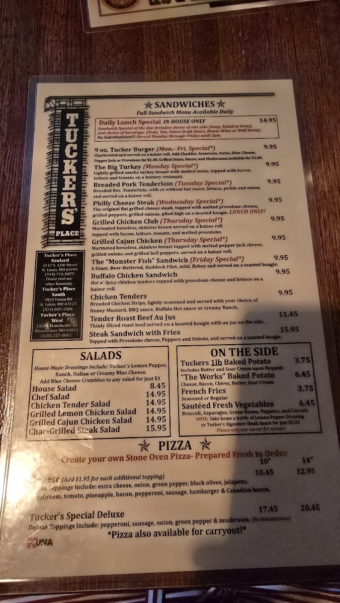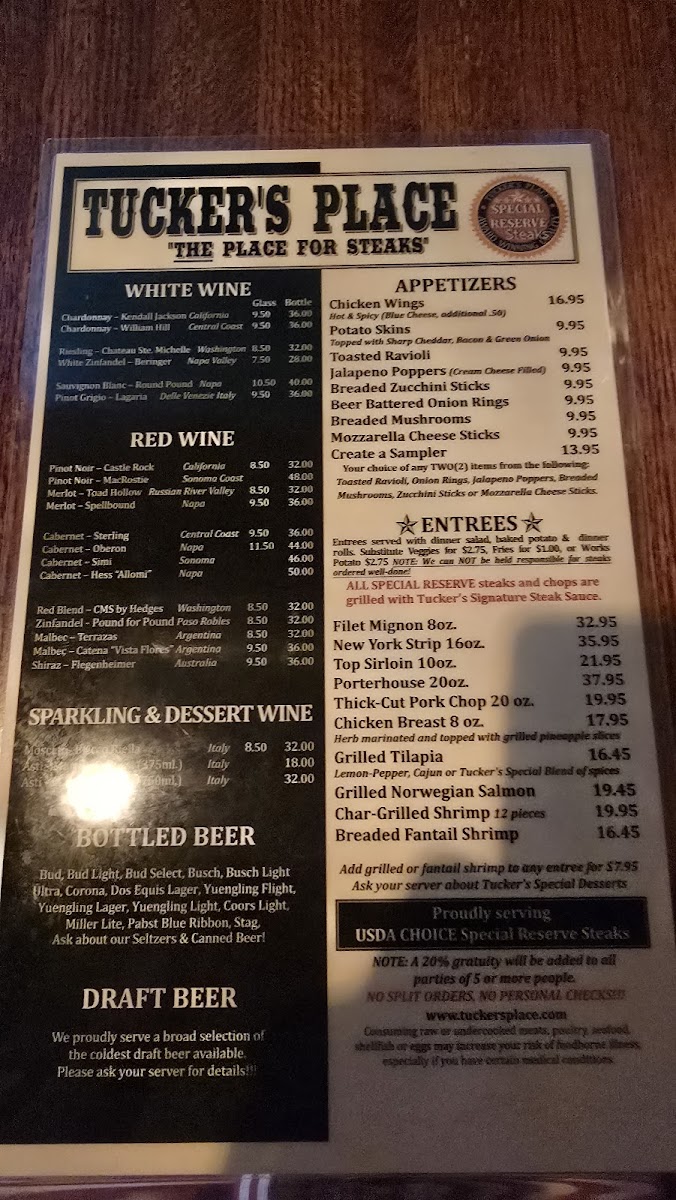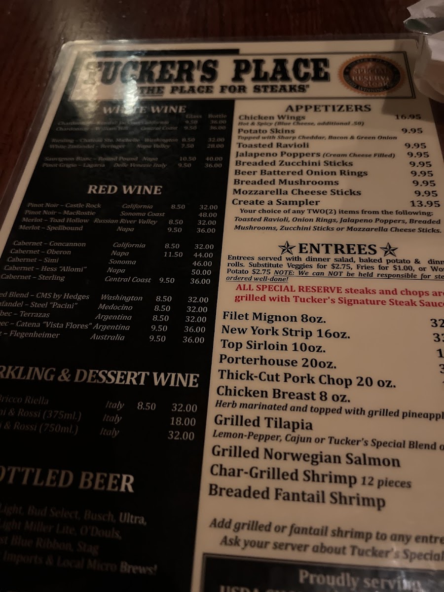 The menu at Tucker’s Place is a meat lover's dream. Start your gastronomic journey with some delightful appetizers, like the crispy Toasted Ravioli or the flavorful Chicken Wings adorned with Riff Raff dry rub, a perfect choice for those who enjoy a bit of zest without the mess. Transitioning to main courses, don’t miss their signature 9oz Tucker Burger, a charbroiled delight that you can customize with a range of toppings – or indulge in the rich flavors of their Delmonico steak special, which has been praised for its perfectly cooked cuts and succulent taste. And if you're feeling particularly adventurous, the Monster Fish Sandwich is a fantastic alternative that will leave your taste buds dancing.